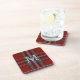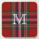 Stylish red custom monogram coaster with the traditional clan MacFarlane tartan plaid pattern. A large white one letter monogram decorates the middle, and is customizable to any letter you want.