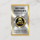 A faux silver layer with a circular piece at the centre is encapsulated by a gold rectangular frame. Over at the top of the card lies your prestigious name and job title with the contact details at the base. A gold chauffeur's logo you can use is placed inside the silver placard.