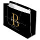 Stylish Minimal Black Gold Monogram Girly Script Large Gift Bag