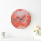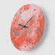 Beautiful wall clock with contemporary dark and light coral red, and soft pastel peach pink coloured squares and circles pattern design. Ornate retro fantasy design is made for the hip trendsetter, graphic digital modern motif designer, or vintage 60's, 70's and 80's art deco and classic nouveau decor lover.