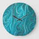 Stylish Modern Abstract Blue Swirls Marble Pattern Large Clock