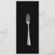 Long and skinny wedding table menu done in white, with graphics of a fork, at the top. Personalize all the text to suit your wedding reception menu. Lovely addition to your wedding reception.