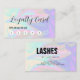 Gorgeous lashes & brows loyalty card design featuring colourful faux holographic texture and elegant calligraphy font.