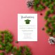 This graduation announcement features a green cap/tassel and gold foil lettering. All text on the front and back is editable. Add a photo to the back of the card to create a truly unique graduation invitation.