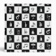 A great gift for any musician or music lover, this cool design features a modern and stylish black and white check squares pattern with various musical notes and musical instruments in alternating colours. It includes pianos, trumpets, drums and saxophones with music notes and treble clefs.