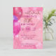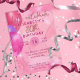 Stylish and modern personalized birthday party invitation design featuring hot pink balloons, stars and sparkles on an abstract pink background.