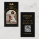 Stylish Modern Script Photo QR Code Photography Photographer Business Cards features a stylish and elegant golden script with your favourite photo inside golden arches with your business details and custom business website QR code on the reverse. On the reverse is your personalized contact details. Personalize by editing the text in the text box provided. Designed by ©Evco Studio www.zazzle.com/store/evcostudio