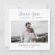 This simply stylish wedding thank you card features words of thanks above your favourite photo and your first names and date below it. We've chosen a warm, modern script and an elegant shade of royal purple for 'Thank You' and added 'for sharing our special day' underneath, with that line separated by the the loop of the 'Y', enhancing its relaxed, intimate charm. This message makes this card particularly well suited to expressing your thanks specifically to those who were able to attend your wedding party. You can edit it to express a more general message of thanks, but the nature of the design might limit your options as far as appearance goes, depending on how long your desired message is and how the words can be arranged with the 'Thank You' above them. The text is a very dark grey that is in fact mostly black. You can of course change this to any colour that suits your style and your day, be it true black or another hue. You can also choose a different font for any or all of the text. You might even want to change the thank you wording or other text to something completely different. We've chosen a transparent background, which lets the colour of the card simply serve as the base tone, but you can choose a colour instead. Similarly, on the back we've used the same very dark grey tone on a transparent base, and we've put some placeholder text there for you to delete and replace with your own message, with or without your names, if you want to sign by hand when you get the cards. But you might also simply choose to delete our placeholder text and leave the back entirely blank so that you can write a message by hand on each card and sign your names. In any case please do remember that there's placeholder text on the back as well and to delete all of our sample/placeholder text on both sides of the card! Use the intuitive design tools, your favourite photo and your inspiration to make this chic modern wedding thank you card uniquely yours!