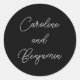 Stylish Modern Script Wedding Names Black Classic Round Sticker