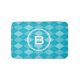 Stylish monogram aqua blue argyle pattern bath mat Trendy diamond shape print design with custom background colour ie turquoise blue. Classy typography for monogrammed initial letter. Create your own classy bathroom interior with this stylish print template. Personalized name initials. Pretty home decor ideas for your house. Suitable for men and women. Trendy retro bathroom rug for home or hotel.