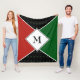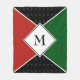 Simple but stylish CUSTOMIZABLE MONOGRAM Fleece Blanket, showing triangles and square in PAN AFRICAN colours of RED, BLACK and GREEN. Matching Fleece Blanket available.
