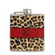 Stylish monogram leopard print pattern and red accent border custom flask. Makes a great gift for all occasions.