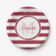 Stylish chili pepper red and white thick stripes paper plates. Personalize this contemporary pattern by adding the name and monogrammed initial of the girl of the hour. This girly monogram design is part of the Chili Pepper Stripes Party Essentials Summer Colour Collection.