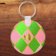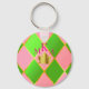 Stylish Monogrammed Pink and Green Argyle Keychain