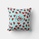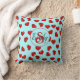 stylish monogrammed Red heart pattern on blue teal Throw Pillow