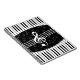 A stylish musical design in grey, black and white with a large treble clef in the centre with curved piano keys creating a border at the top and bottom of the design with a subtle pattern of grey musical notes in the background. An eye-catching music gift for the pianist, music lover or musician.
