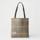 Stylish chic plaid shoulder bag in muted spring colours. Design includes a tweed pattern of overlapping layers intertwining the individual base colours and a light graphic texture to create a softer, flannel like, look. Corner tag, simple understated embellishment, printed with personalizable monogram and name. Front and back designs match. Beautifully attractive, stand-out accessory suitable for everyday use.