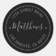 Stylish Name & Circular Text | Black & Grey Classic Round Sticker