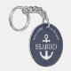 Stylish Nautical Anchor Navy Blue Custom Boat Name Keychain
