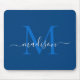 Stylish Navy Blue White Monogram Script Simple Modern Mouse Pad