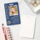 Create a professional appearance with this Notary Public ID badge. A stylish design featuring a feather quill pen within a seal-shaped symbol. This template is personalized with your profile photo, name, service information, contact information, and a QR code. A classic blend of traditional and contemporary styles, creating an elegant and friendly aesthetic. Fully customizable text to fit your business brand. Perfect for a Notary Public, Loan Signing Agent, Certified Notary Trust Delivery Agent (CNTDA), Mobile Notary, Apostille or other legal professional. Printed colours: navy dark blue, white, and gold colour elements. Shop the online collection for more popular product ideas and supplies, designed for notaries!