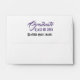 This A6 sized envelope interior has stylish old lavender colour sweeping strokes design. The back flap features template text matching the graduation party invitation. Fill in the template fields with your information, remove the text or edit using the design tool to select a font style, size, and colour you like.