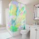 Stylish Modern Minimalistic Pastel Theme Abstract Art Bath / Shower Curtain to add to your home / office / business décor collection. A great gift / present idea for all who love happy positive vibes, abstract art, custom design personalized items, unique things. Pale Pastel Yellow, turquoise, coral, blue, pink etc.
