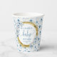 Celebrate your baby boy in style with these personalized paper cups, designed with soft boho watercolor dusty blue and pastel blue flowers accented in elegant gold. Perfect for boy baby showers, these charming cups add a stylish and coordinated touch to your tables, drink stations, and dessert areas.