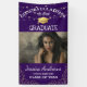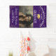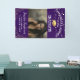 A stylish 'Congratulations to our Graduate' door banner, featuring a photo of the student, on a purple background that can be changed to any colour, string twinkle lights, gold glitter corners, a gold graduation cap and text that can easily be customized.
