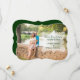 Lovely bracket shaped wedding save the date announcement, with the whole background taken up by your custom photograph. A semi transparent decorative text area, on the right side of the card, has green custom text ready to personalize. Great way to announce your up coming wedding plans.