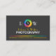© 2011 Socialite Designs. Colourful design photographer business card. Choose a different background colour and font style.
