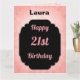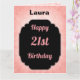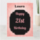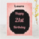 Pretty pastel pink and black personalised 21st birthday design greeting card.