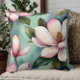 Stylish Pink and Green Floral Throw Pillow