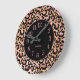 Stylish Pink Black Cheetah Leopard Print Monogram Large Clock