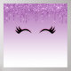 A poster with a trendy stylish design. The background is a purple gradient colour with an image of faux sparkling glitter dripping down from the top. A pair of girly cute eyelashes underneath the glitter image.