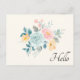 Stylish Pink & Blue Flower Bouquet Hello Postcard