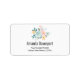 Address labels with a pretty watercolor illustration. A flower bouquet with pink and blue flowers surrounded by green leaves and sprigs.