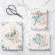 Wrapping paper sheets with a pretty watercolor illustration. A flower bouquet with pink and blue flowers surrounded by green leaves and sprigs.