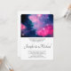 Wedding invitation with a beautiful abstract design in pink and blue. White stars sprinkled throughout this image of the cosmos. A semi-transparent layer placed over top to give it a faded elegant look.