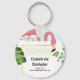 Stylish Pink Flamingo and Tropical Leaves Wedding Keychain