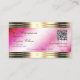 Stylish Pink Marble Gold Borders Logo and QR Code Business Card