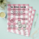 Great looking flyer for dog groomers or any dog care small business, done in a pink and white gingham, on front and back. Cute graphics of a white poodle, on the lower right side, and a pink button like tag, on the left side. Text in black is ready to personalize for your pet care business. Return address, on the back of the flyer is positioned for use as a tri-fold mailer, erase this text if you do not wish to mail these flyers.
