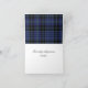 Stylish Thank You card, done using a traditional Scottish tartan plaid, in blue and black. A black ribbon and bow separate the black bottom from the plaid top part of this elegant card. Customize the text to say anything you want.