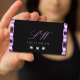 Stylish Purple Black Sparkling Diamonds Monogram Business Card