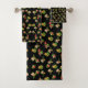 Stylish red and pink wildflower pattern on black bath towel set