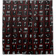 This designer musical notes geometric pattern features white music notes encased within rectangles and squares with red borders on a black background. A great design for any musician or lover of music.