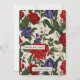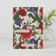 Beautiful vintage look floral print Christmas greeting card features stylish pretty red and blue botanical flowers with greenery leaves on a taupe background, and includes a vibrant red back of the card. A simple Christmas greeting with elegant white script and your personalized name complete this festive card.