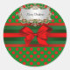 Stylish Red & Green Polka Dot Ribbon Christmas Classic Round Sticker