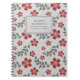 Stylish Red Grey Flowers and Leaves Personalized Notebook