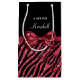 Stylish Red Zebra Print FAUX Glitz Bow With Name Small Gift Bag